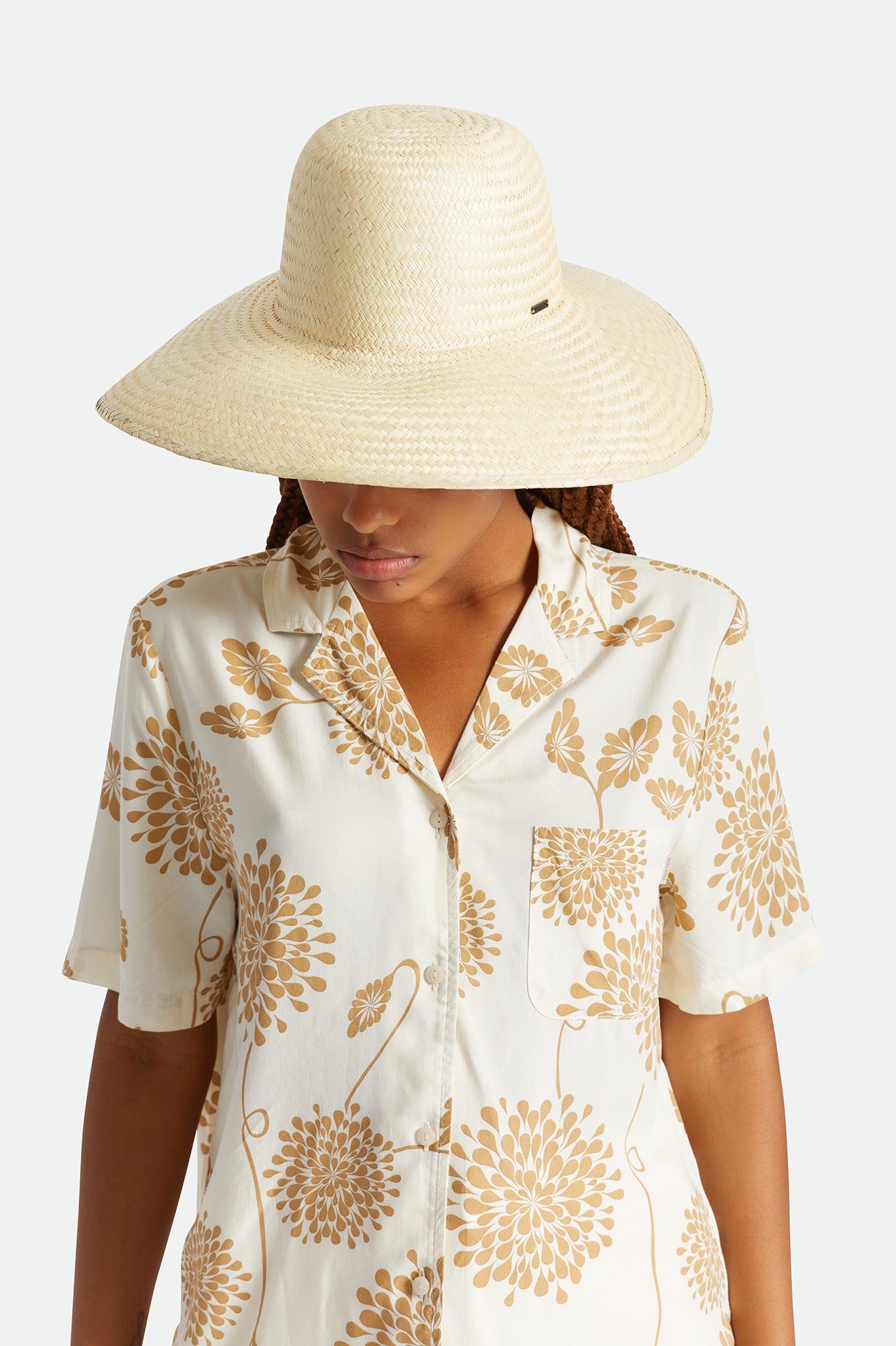 The Janae Sun Hat provides shade in heritage style. Woven with Huapanapa palm leaf straw, it offers light stiffness and 50+ UPF coverage. Dress it up with a silk scarf and oversize sunnies for that instant old Hollywood feel.