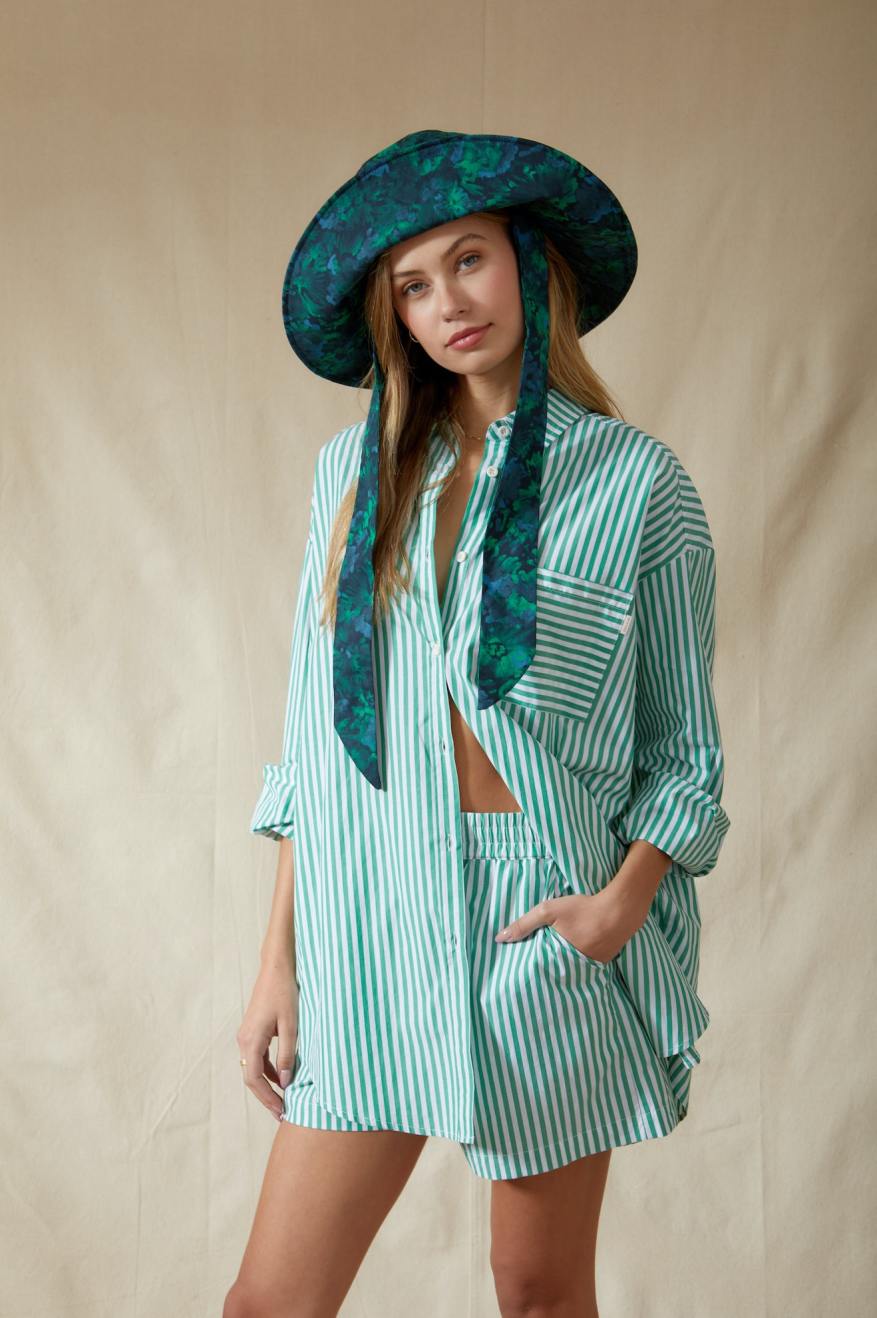 Designed to stand out, the Jasper Packable Bucket Hat is the main character. It’s made with packable cotton and a shapeable brim that springs back to shape after travel. Long neck ties add a romantic way to keep it close while the deep brim creates personal shade.