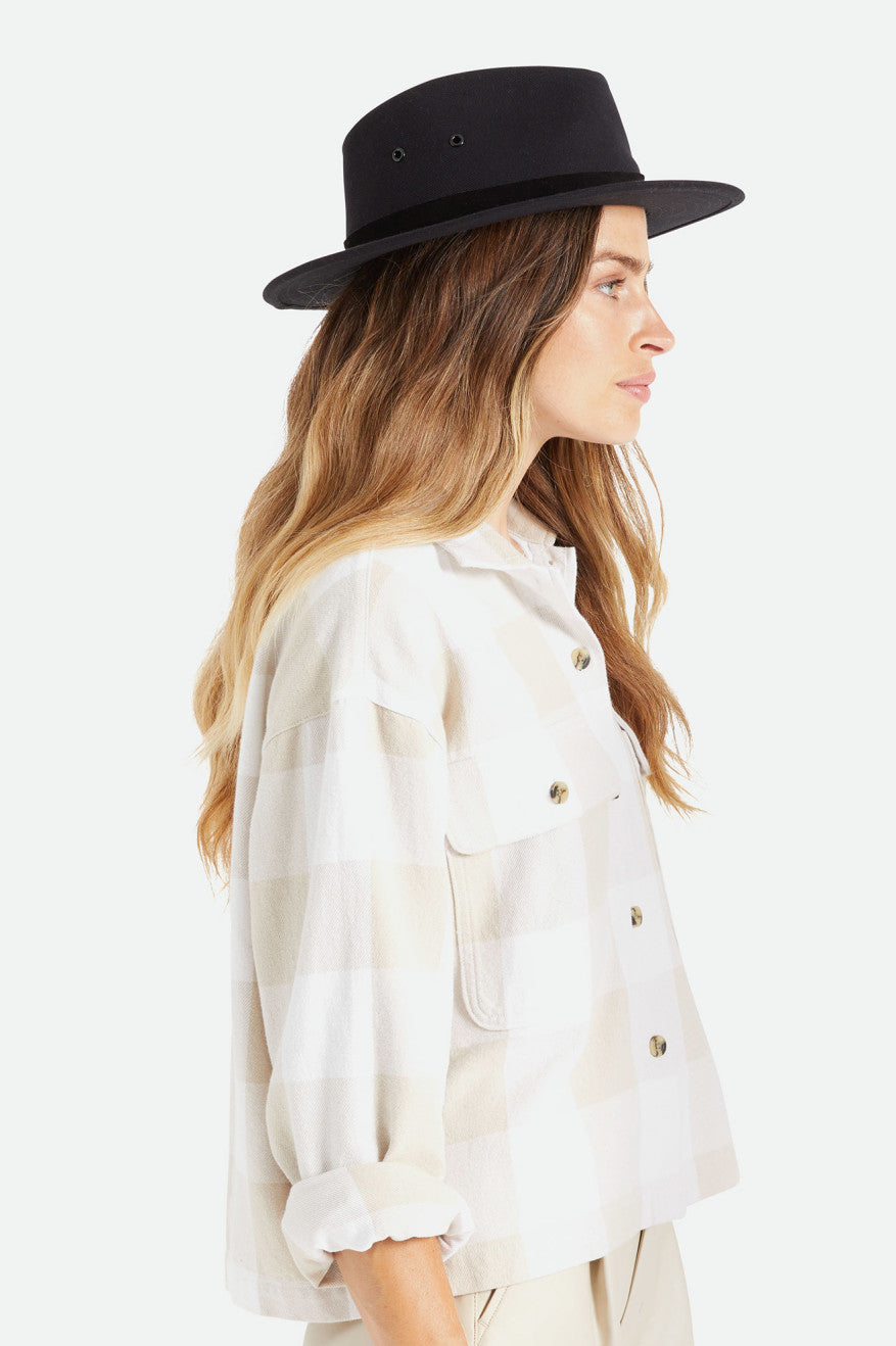 This version of our Messer Fedora is designed for travel and daily transit. Made with lightly structured cotton, it has an antimicrobial and moisture-wicking sweatband to keep you cool. Adjust your fit with the inner Velcro strap while rivets allow for extra airflow. Elevated with a 100% genuine suede leather band and a metal crest pin.