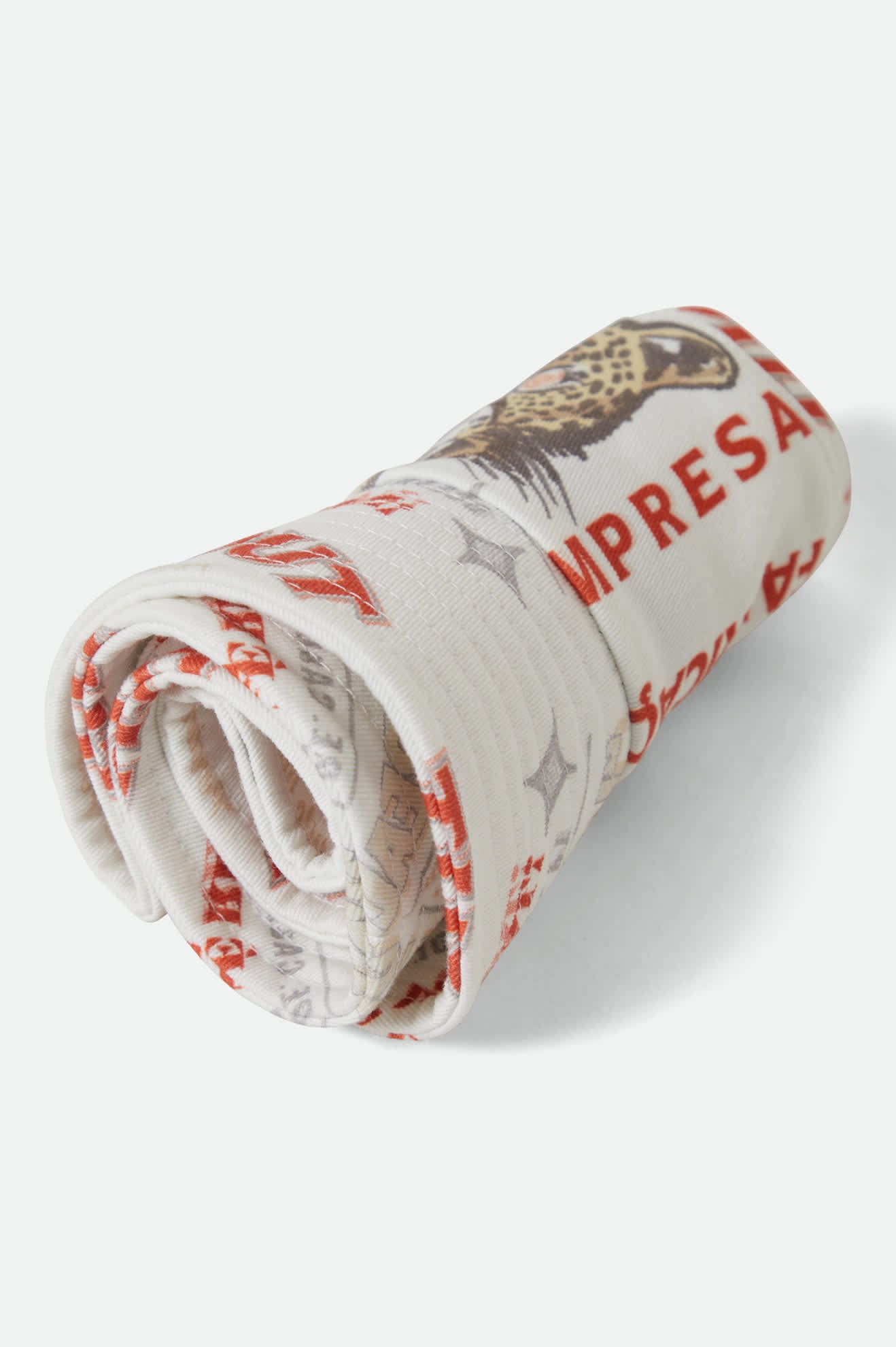 Pack light, travel far. Cotton-elastane blend with all-over Brixton custom travel print that celebrates the journey as much as the destination. Packable design folds flat in your bag, moisture-wicking elastic sweatband keeps you comfortable when you unfold it. Stretch construction means it fits right and moves with you. For people who collect passport stamps, not just cool accessories.