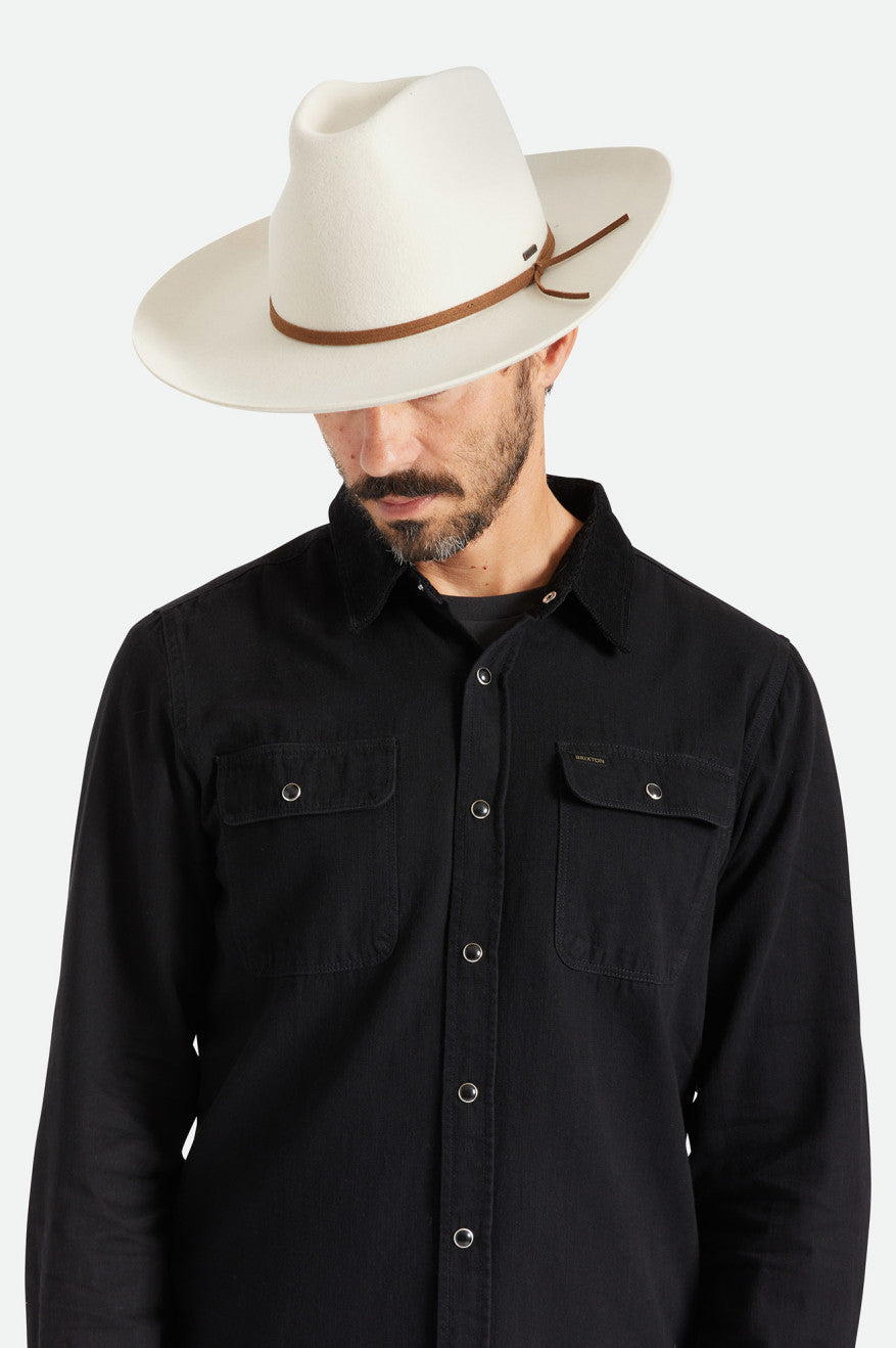 The Sedona Reserve Cowboy Hat is a signature Western-inspired hat with a high crown and strong crease. It’s crafted from a combination of Australian wool and genuine suede with an interior leather sweatband for comfort and durability. A custom gold foil art appliqué decorates the bottom of the brim, making a luxurious statement on this elevated favorite.