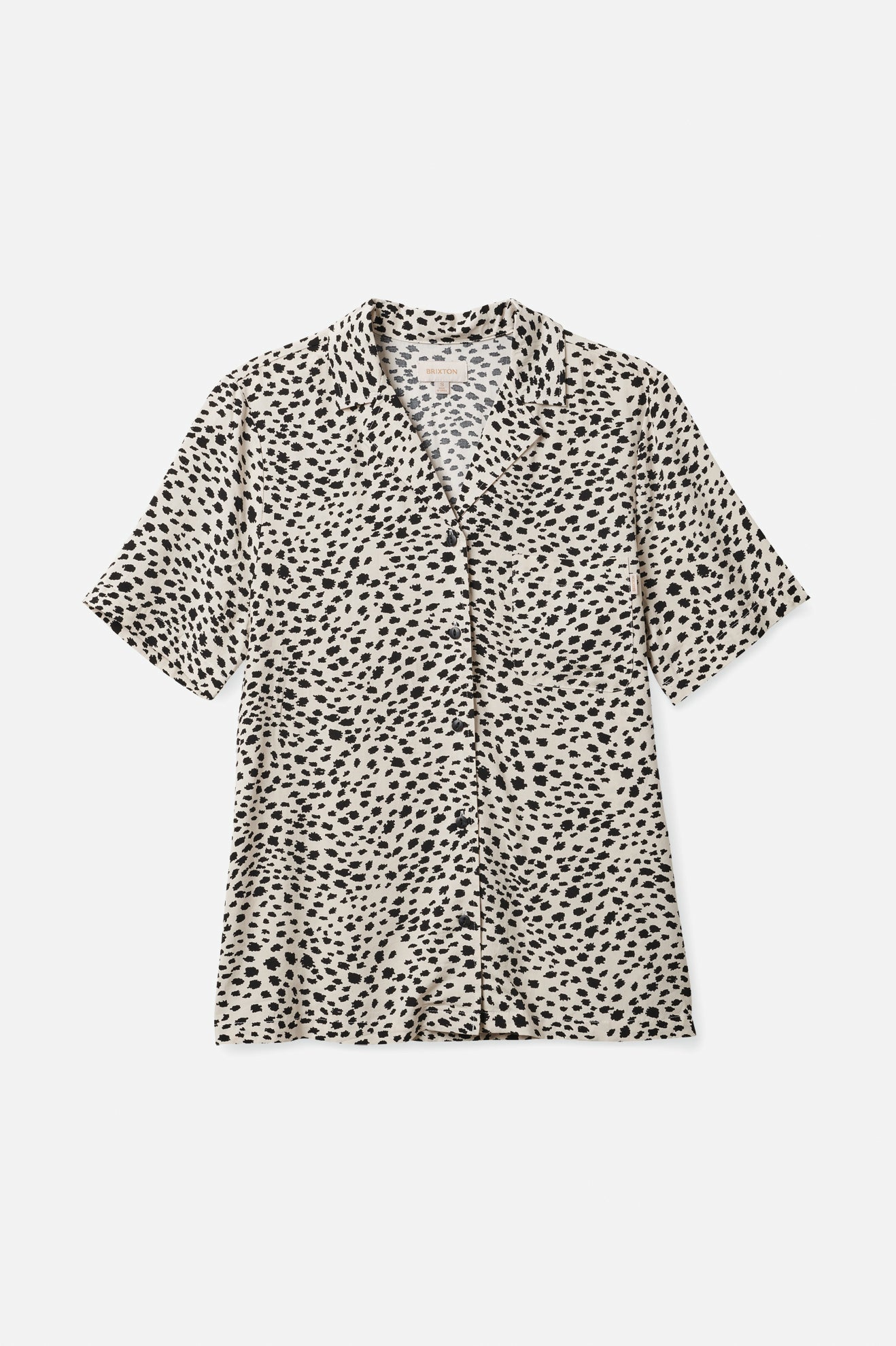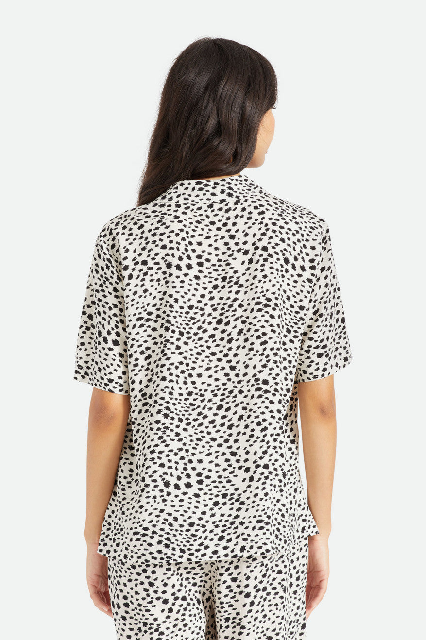 The Bunker gets a longer boyfriend fit in this short-sleeve button-up. Made with lightweight viscose satin that drapes beautifully, it has a custom cheetah print that pops. Finished with a notched collar and side seam vents.