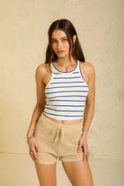Ready for the beach or your next pool party, these sheer cover up shorts feature an elastic waistband and drawcord for a comfortable fit. Wear them over your swimsuit paired with the Aruba Boxy V-Neck.