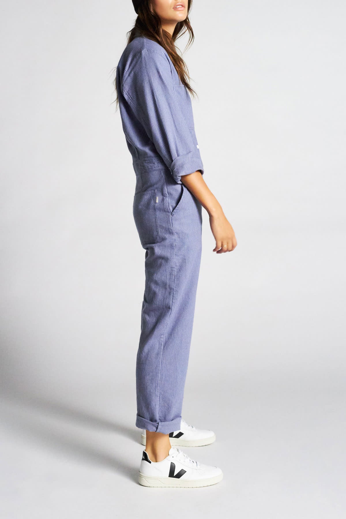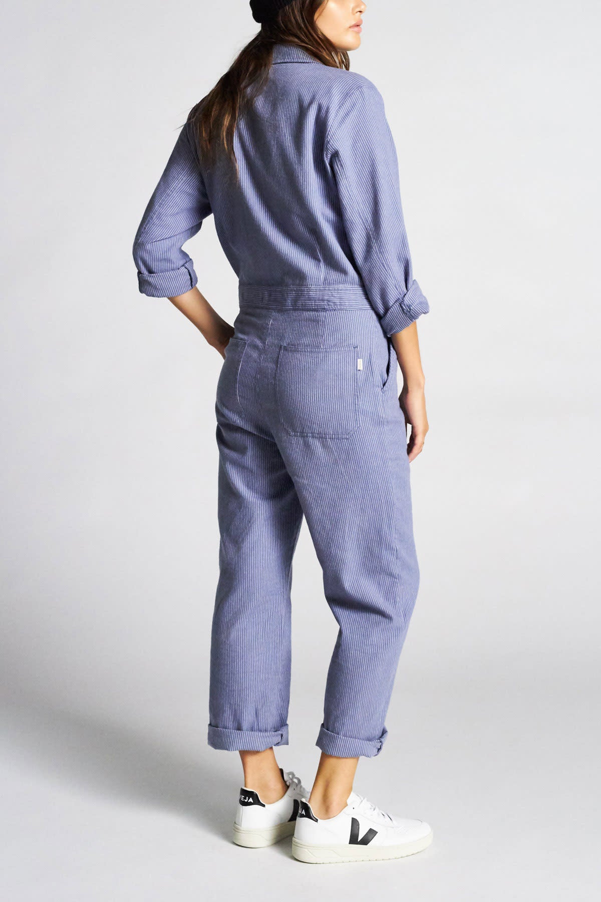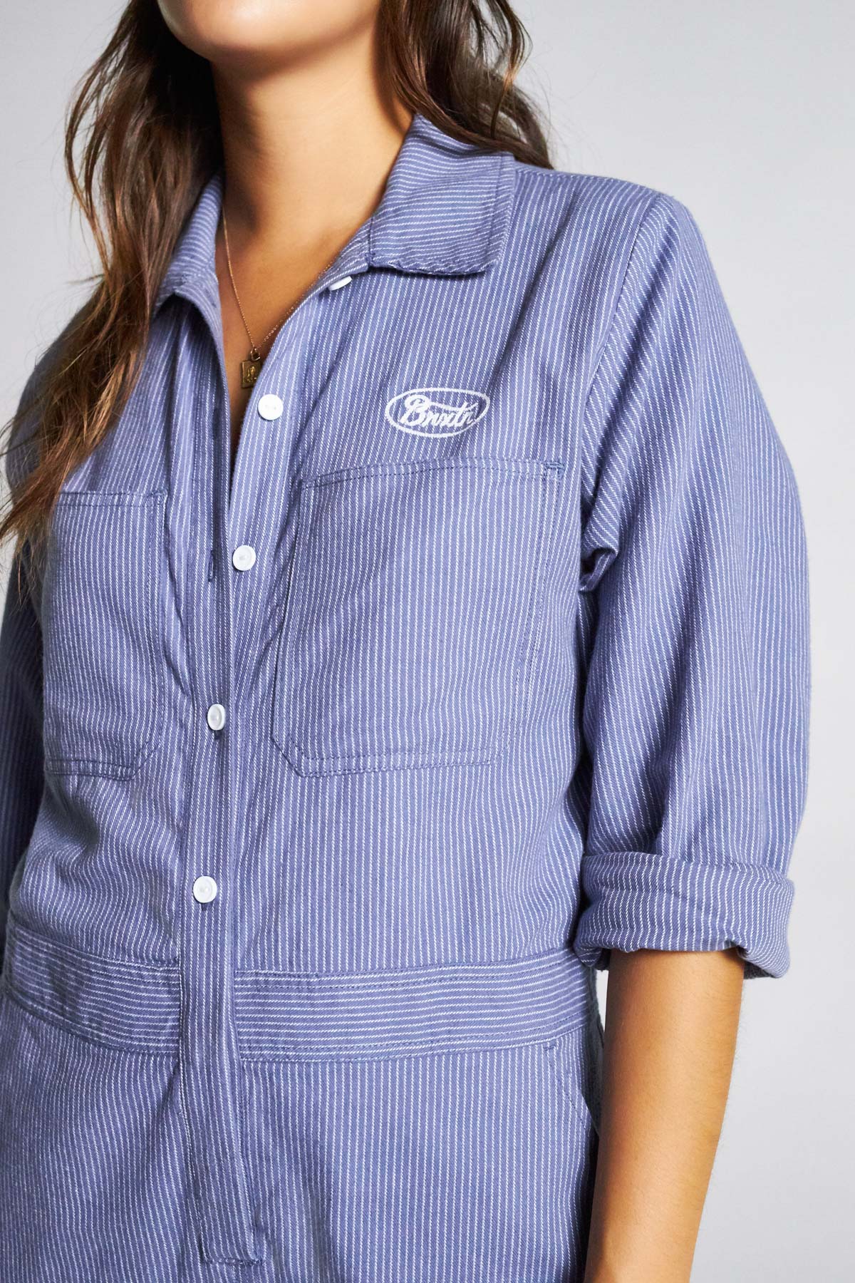 A relaxed-fit coverall made in 5-oz. 100% cotton yarn-dyed twill. It features multiple pockets, woven Brixton labels, chest embroidery, and a 17" leg opening.