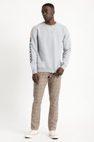 The Alton Crew is a standard fit pullover fleece constructed with a cotton and polyester blend. Finished with a binded neck collar and featuring a woven label at left chest and screen printed logo on the right sleeve, this one is clean, simple, and minimal in design. A great option for everyday wear.