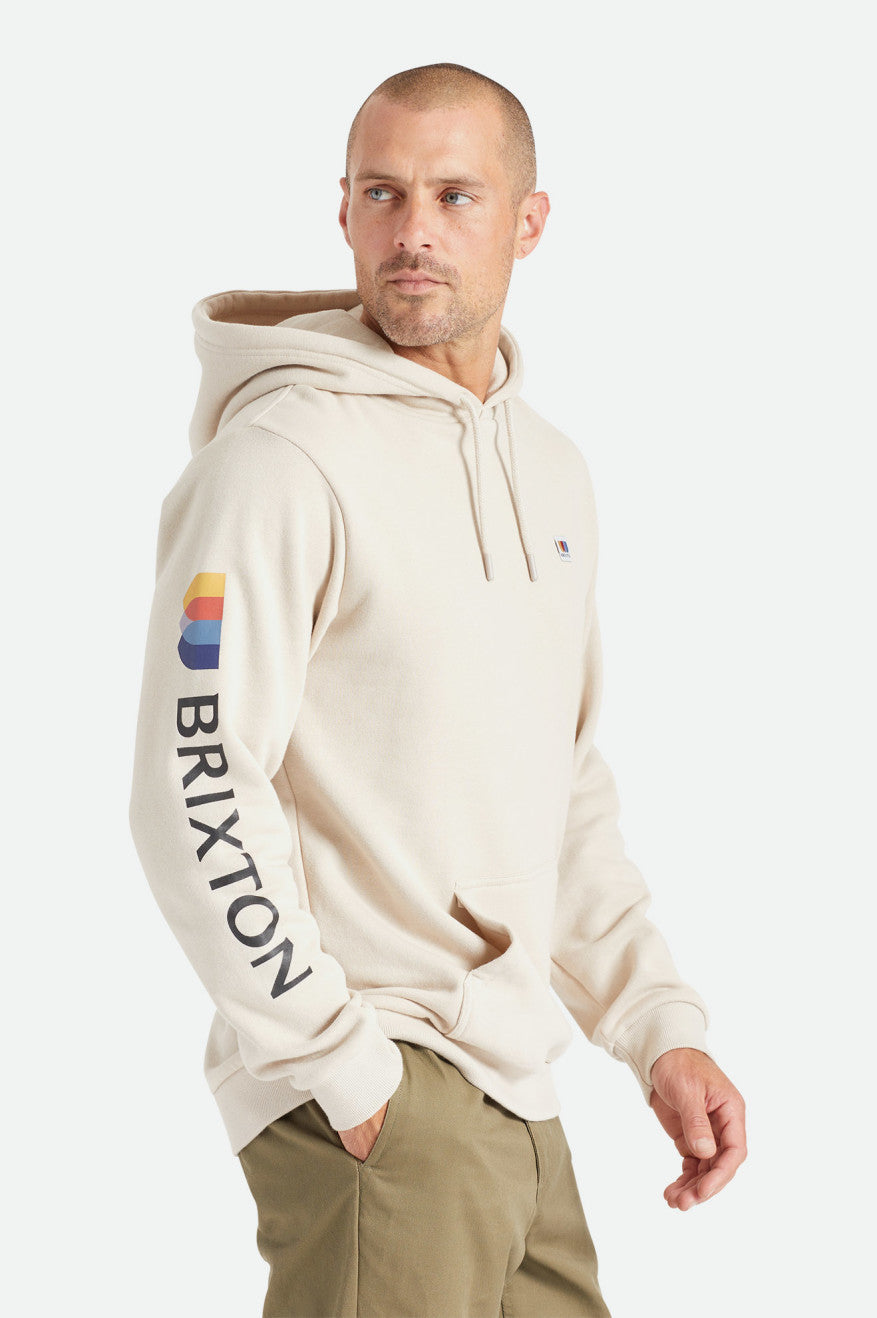 The Alton is classic hoodie crafted in a brushed fleece cotton blend. It features a standard fit finished with a right sleeve graphic and woven chest label. A drawcord hood and inset sleeves ensure this piece falls just right.