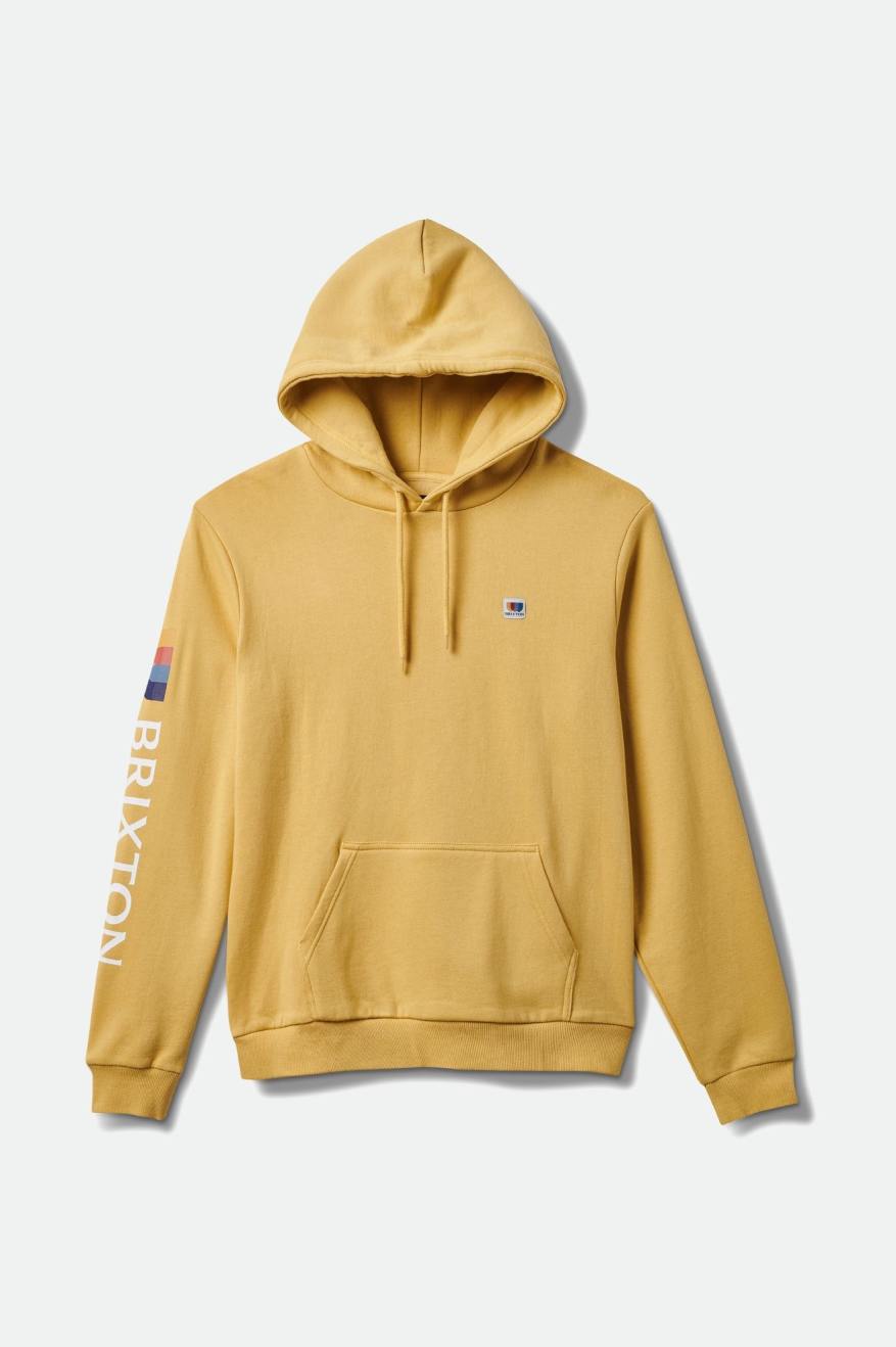 The Alton is classic hoodie crafted in a brushed fleece cotton blend. It features a standard fit finished with a right sleeve graphic and woven chest label. A drawcord hood and inset sleeves ensure this piece falls just right.