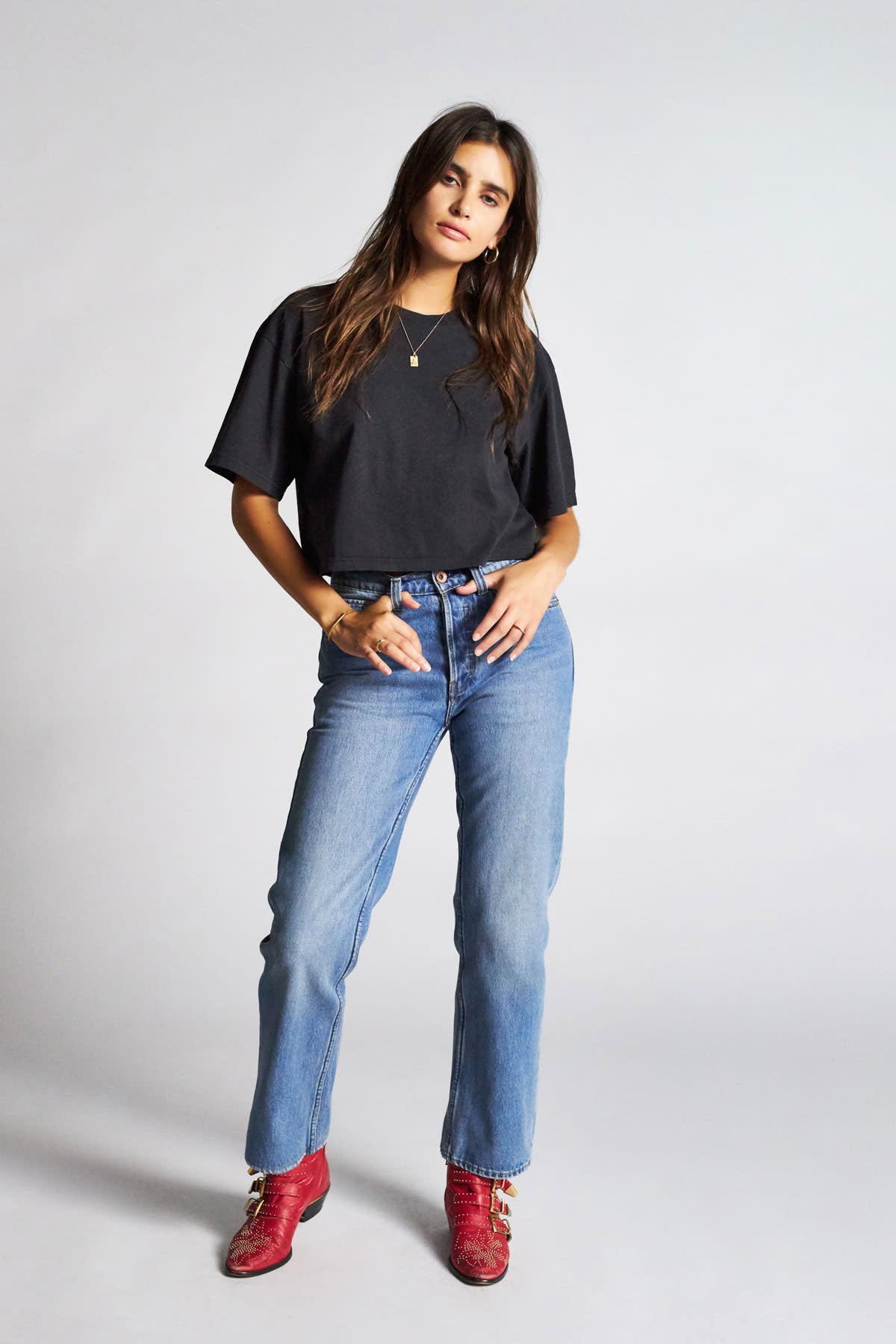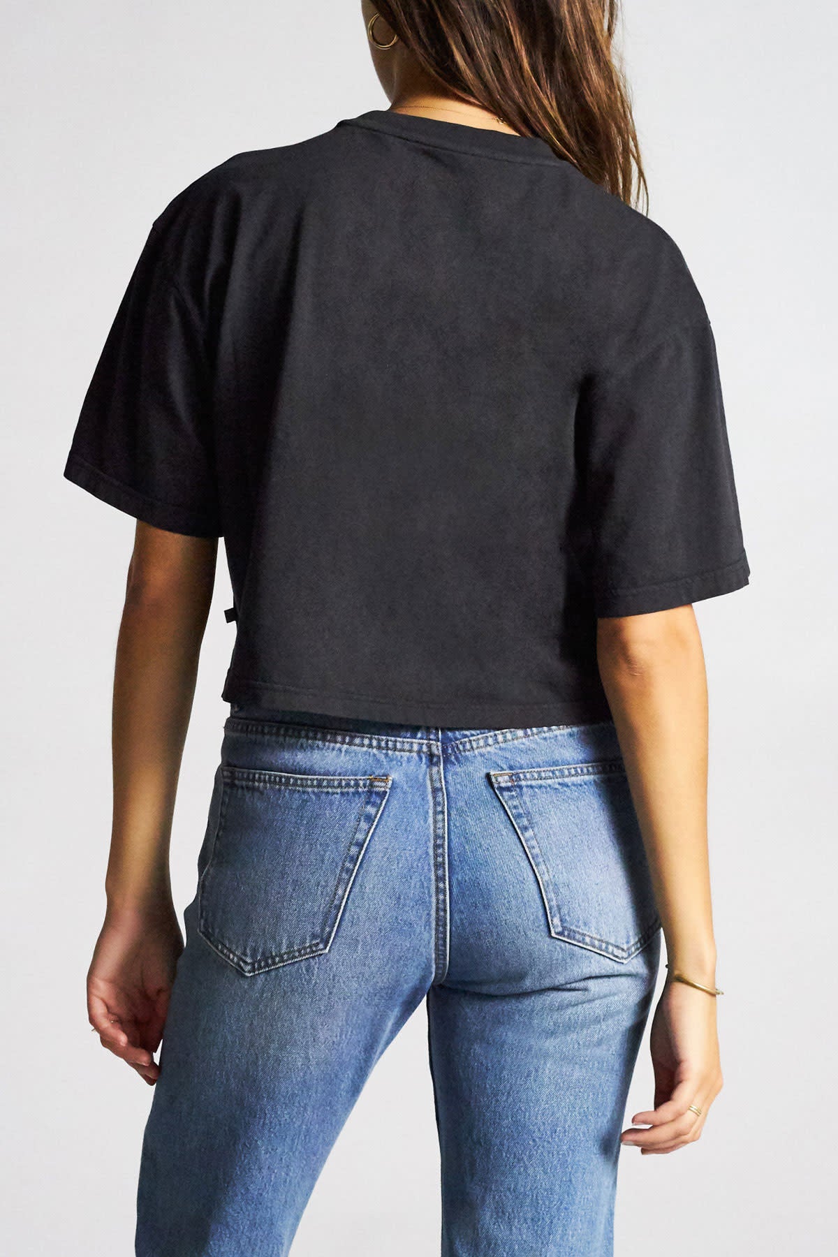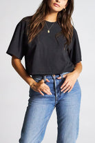 It features a silicone softener wash, exaggerated short sleeve, drop shoulder, and woven Brixton labels.