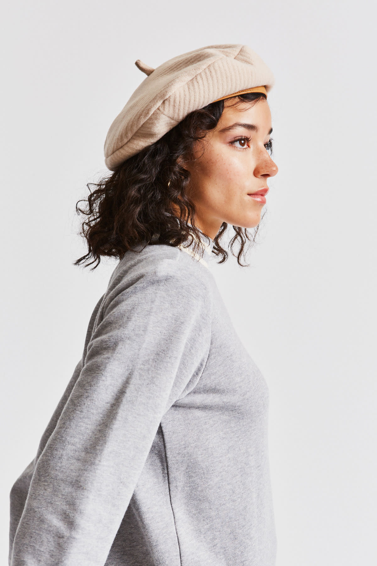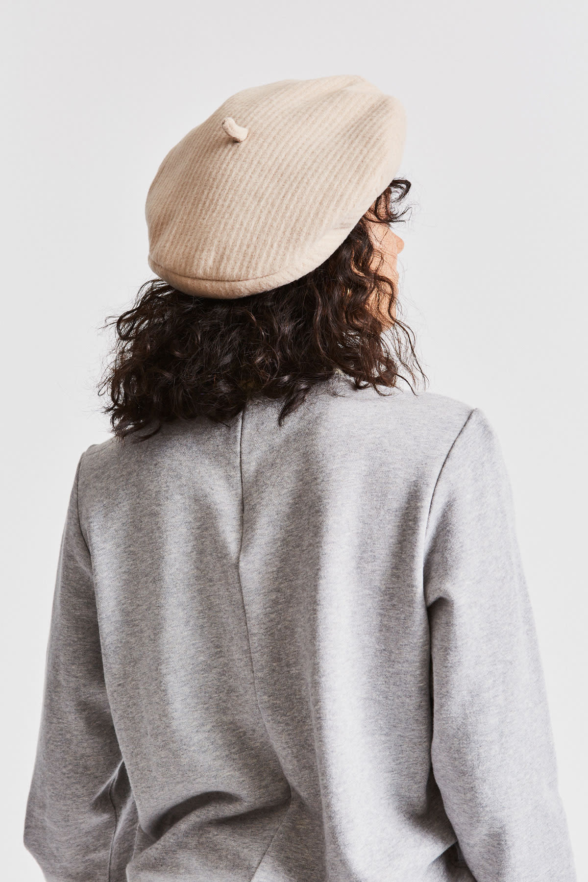 The Brixton Audrey II Beret is a custom beret hat in mixed fabric featuring leather crown trim with a metal Brixton B-shield.