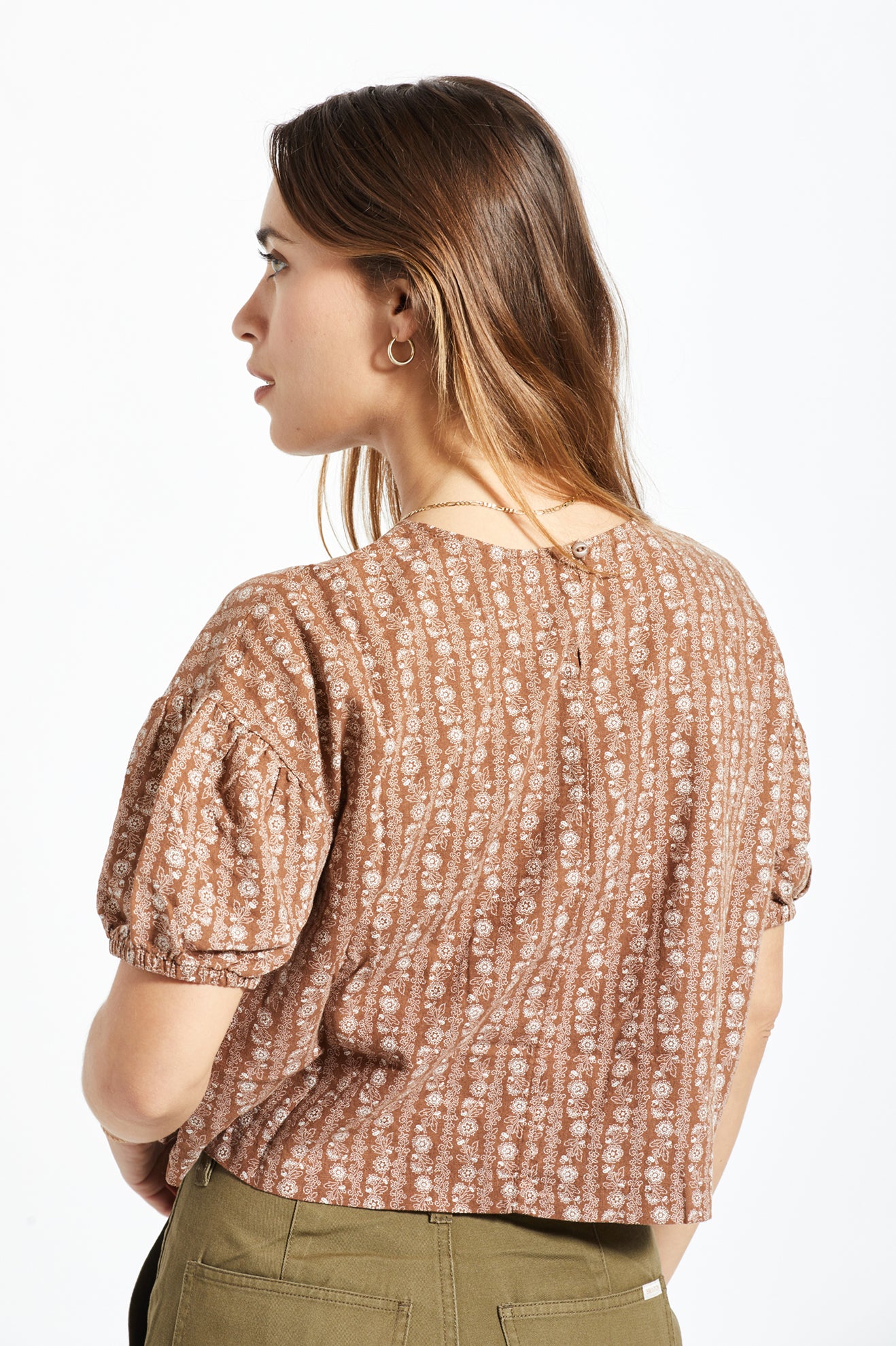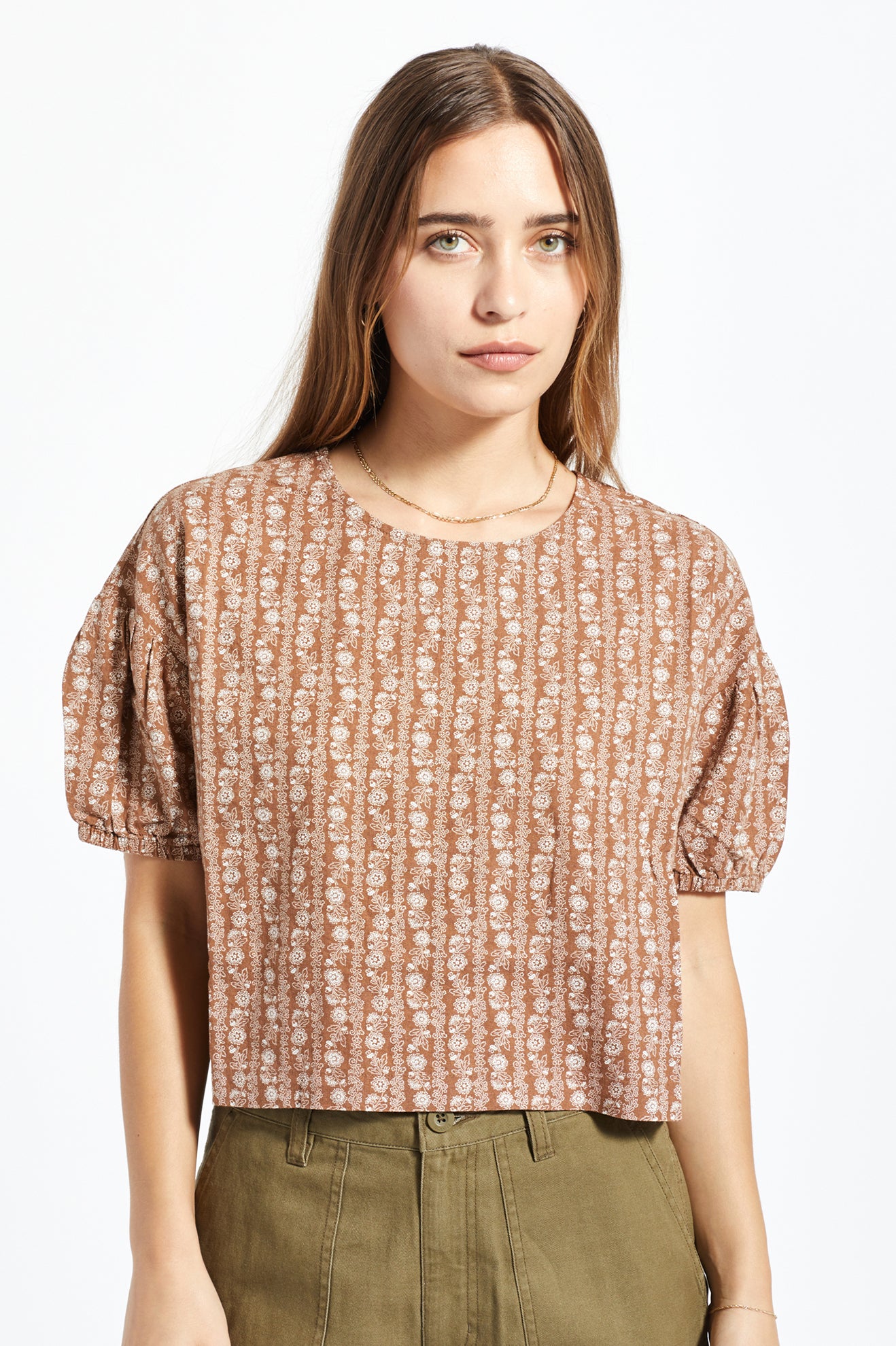 Made from lightweight linen, this patterned top features a perfectly relaxed fit and cropped length. Finished with drop shoulders and short balloon sleeves.
