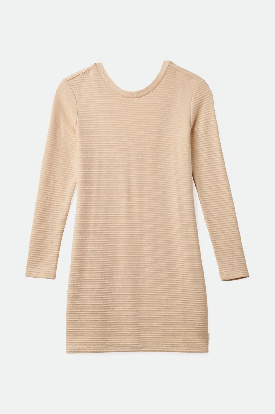 This long-sleeve dress is designed with a tonal texture rib knit with a subtly striped finish. It has a close-to-the-body fit with a flattering scoop back. Perfect for transitioning through the seasons.