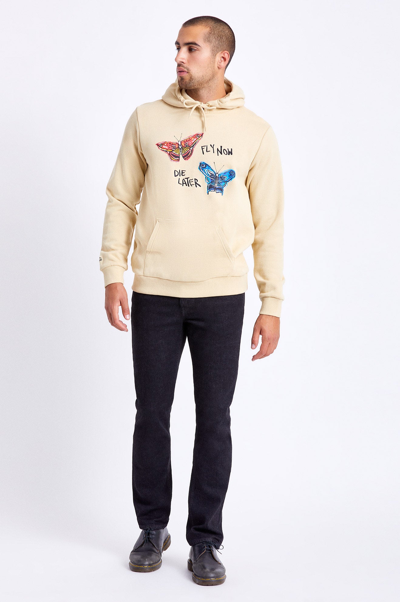 The BB Fly Now Hood is a mid-weight, cotton and polyester blend fleece built to deliver everyday ease and comfort. Featuring drawcord hood adjusters and a kangaroo patch, it's laidback and warm—and an embroidery is the focal point at the chest, while there are small direct embroideries at the right sleeve cuff and back left shoulder to add extra visual interest, thanks to artwork by BB Bastidas. A relaxed and fun everyday basic.