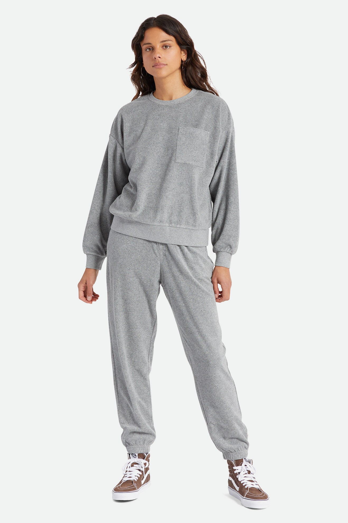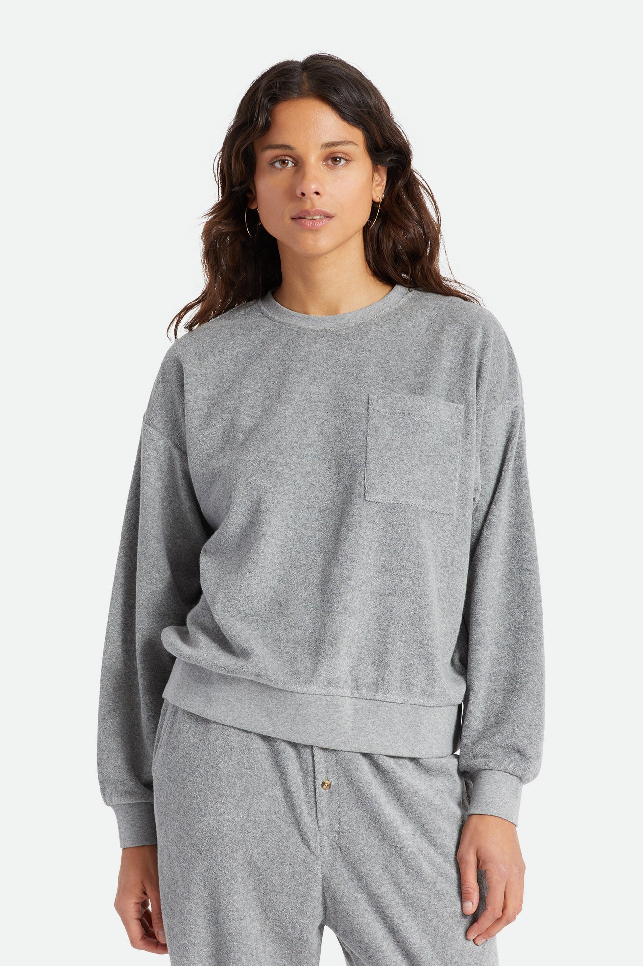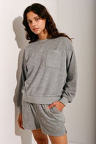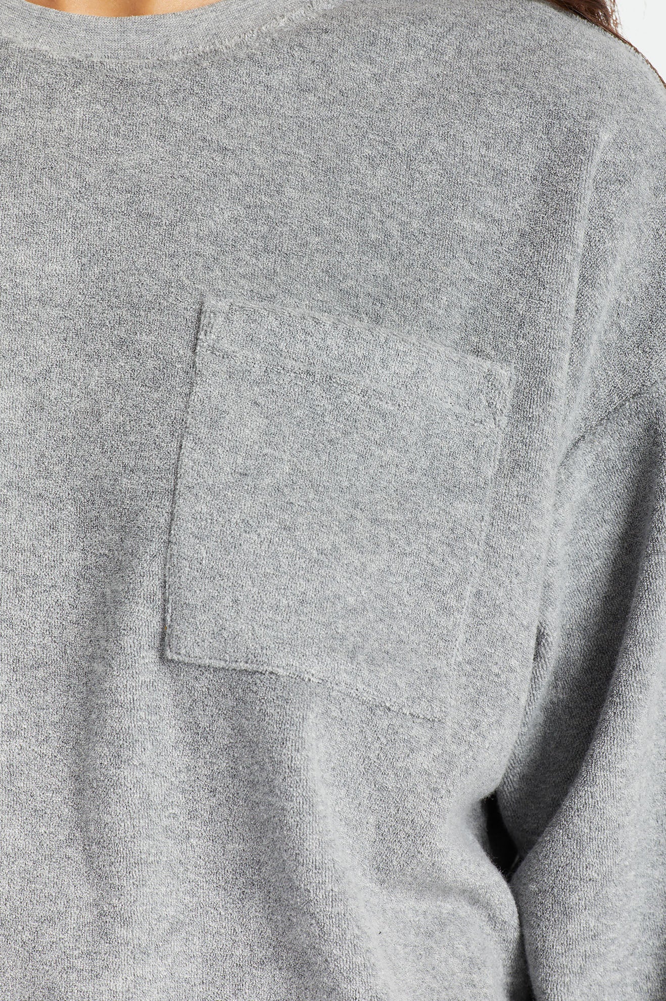 The Bella Crew is crafted in a lightweight terrycloth fabric designed for summertime lounging. Layer it up in the evenings or pair it with the matching joggers or shorts for a winning, monochromatic vibe.