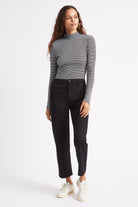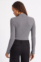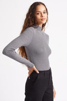 A slim fit turtleneck made of viscose and spandex rib, this top is comfortable and casual, but it also easily dresses up when you need it to. A go-to wardrobe staple for years to come.