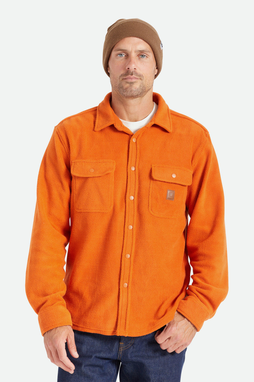 The Bowery L/S Arctic Stretch Fleece is a casual flannel designed for no-fuss layering. It has a relaxed fit elevated with dual snap chest pockets and a vegan leather patch. The medium-weight recycled fleece blend has been treated with a softener wash for that well-worn feeling.