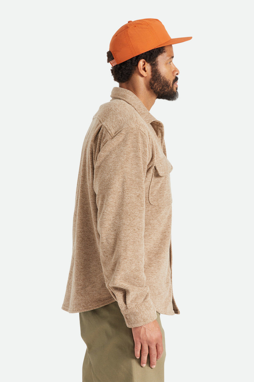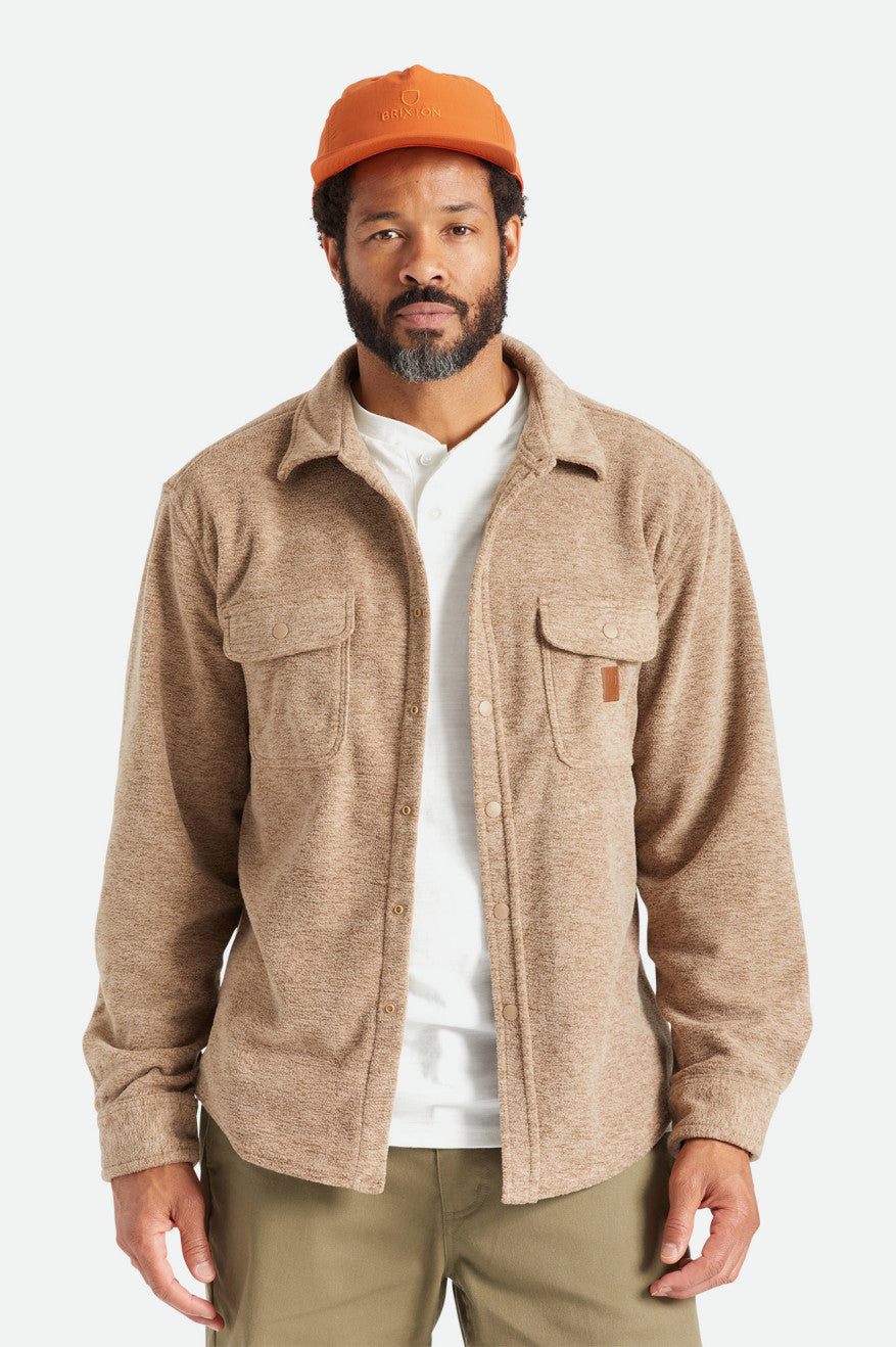 The Bowery L/S Arctic Stretch Fleece is a casual flannel designed for no-fuss layering. It has a relaxed fit elevated with dual snap chest pockets and a vegan leather patch. The medium-weight recycled fleece blend has been treated with a softener wash for that well-worn feeling.