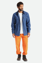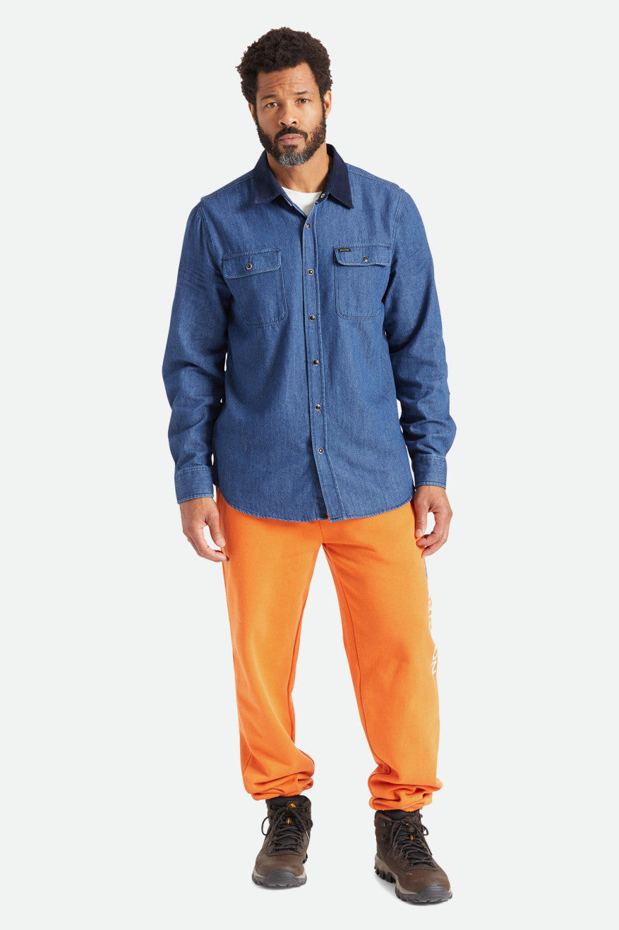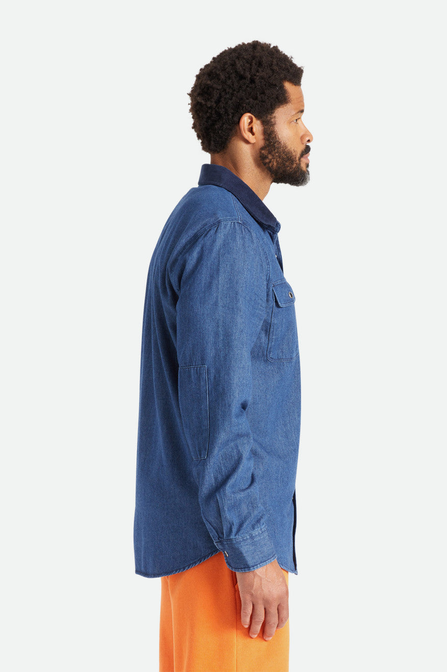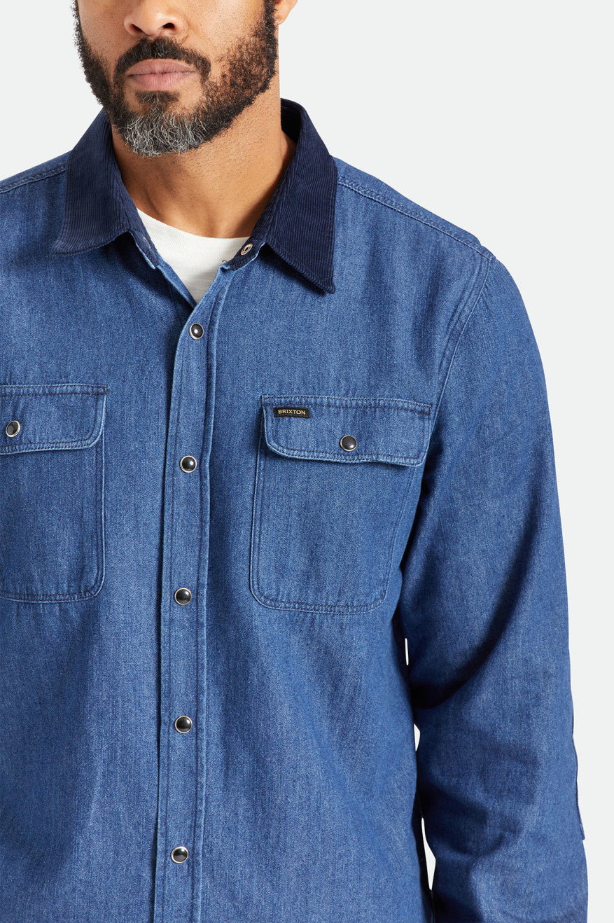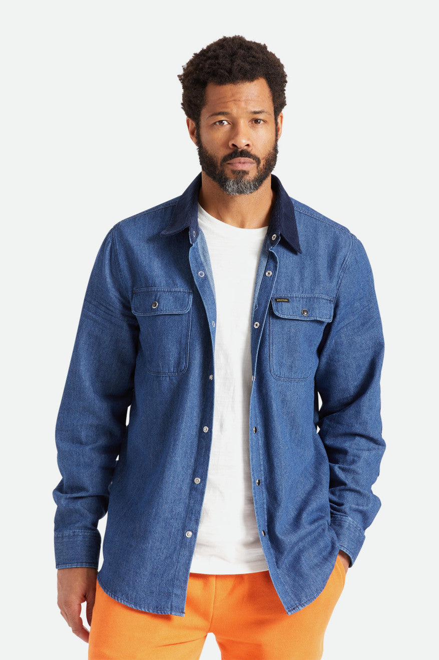 A fresh take on a Brixton staple, the Bowery Reserve L/S Woven adopts Western-inspired influences for understated style. Opting for a seamless yoke, it keeps the dual chest pockets of the classic Bowery but swaps out the front buttons for pearl ring snaps. Elbow patches and a corduroy collar add durability in high-wear areas and the entire garment has been treated with a softener wash for that favorite-shirt feel.