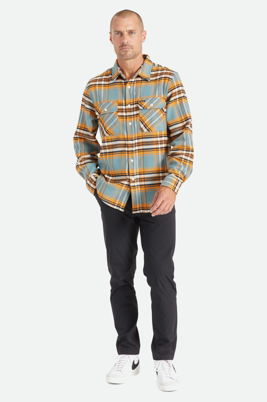 The Bowery Stretch L/S Utility Flannel is a woven shirt verified for versatility. It’s built with a blend of cotton, recycled poly and elastane, making it flexible and sustainable. Finished with a DWR coating for added protection from the elements.