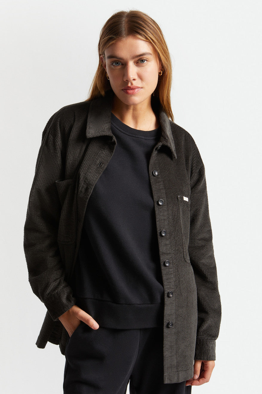 The Bowery Tunic Overshirt is a premium everyday shirt. Made of 8-oz. 100% cotton waffle corduroy it offers extra warmth and durability. Finished off with logo buttons and a logo label at pocket. Everyone needs an oversized shirt in their closet.
