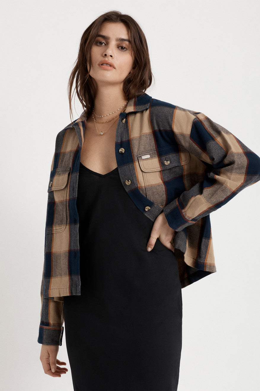 Made with 100% organic cotton yarn-dyed plaid flannel, The Bowery W L/S Flannel has a feminine silhouette to it with a dropped shoulder and slightly cropped fit. Featuring chest patch pockets and adjustable sleeve cuffs, this one is designed to look great but still be functional for those days you literally need to roll up your sleeves and get to work!