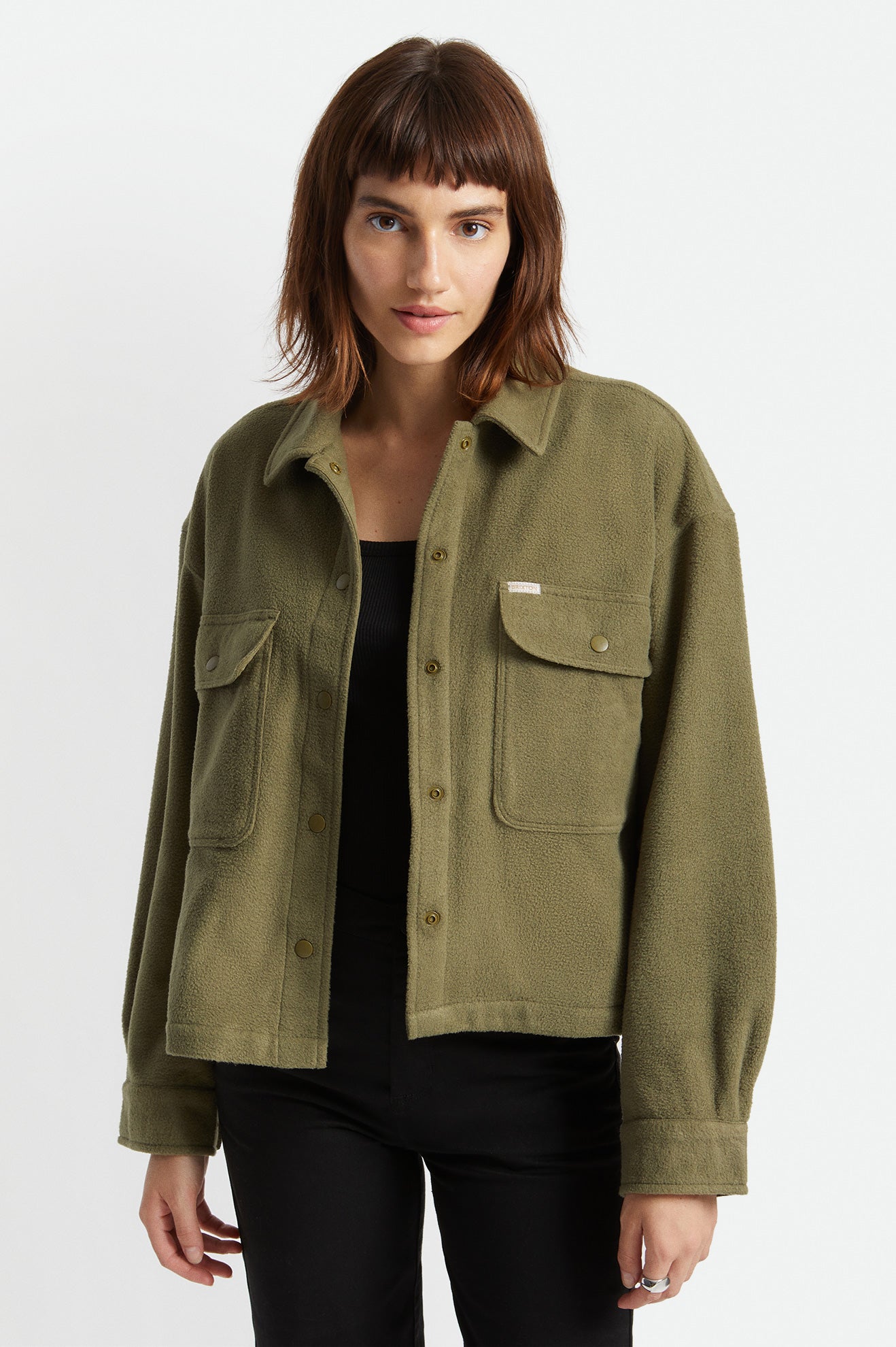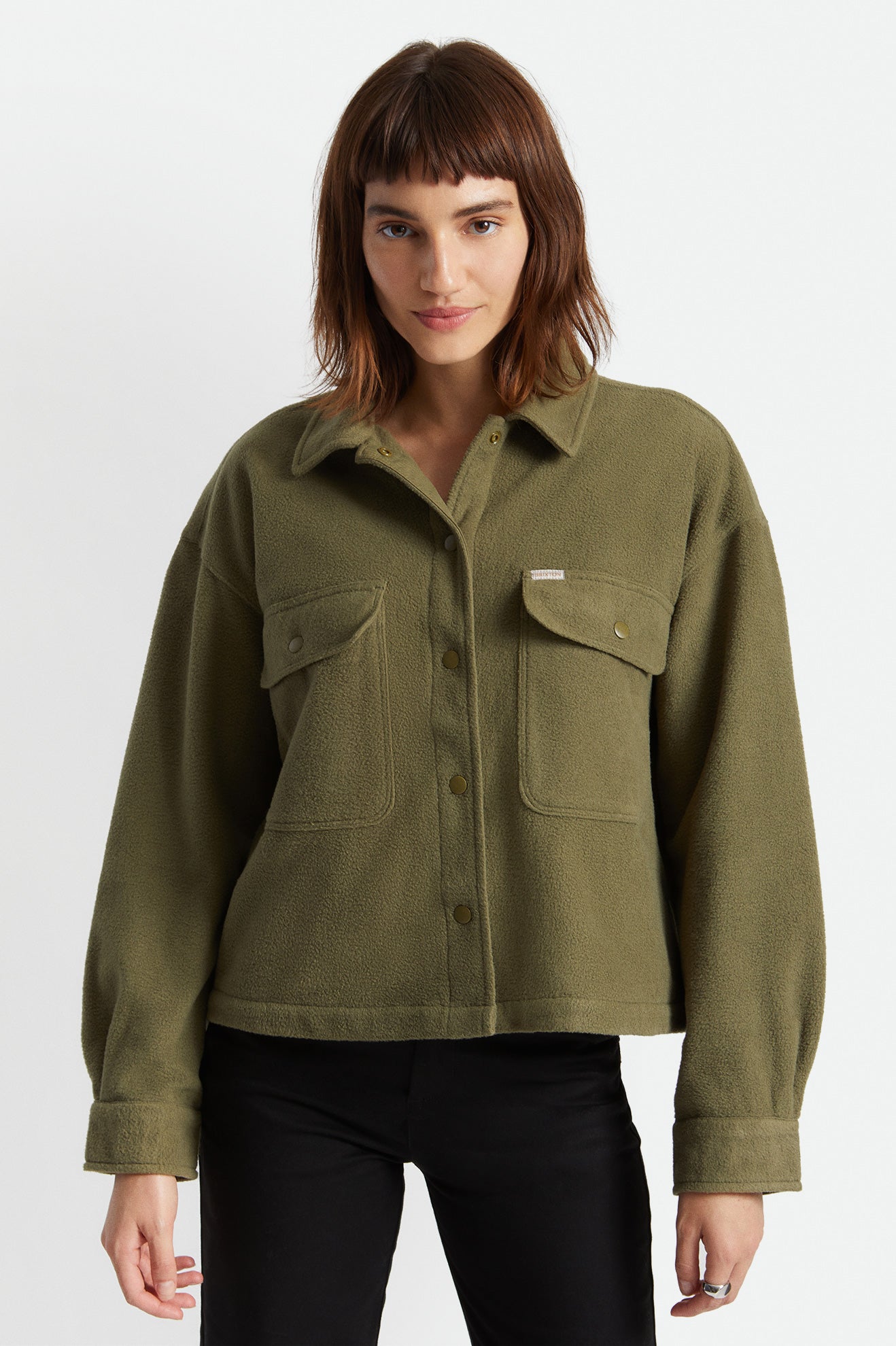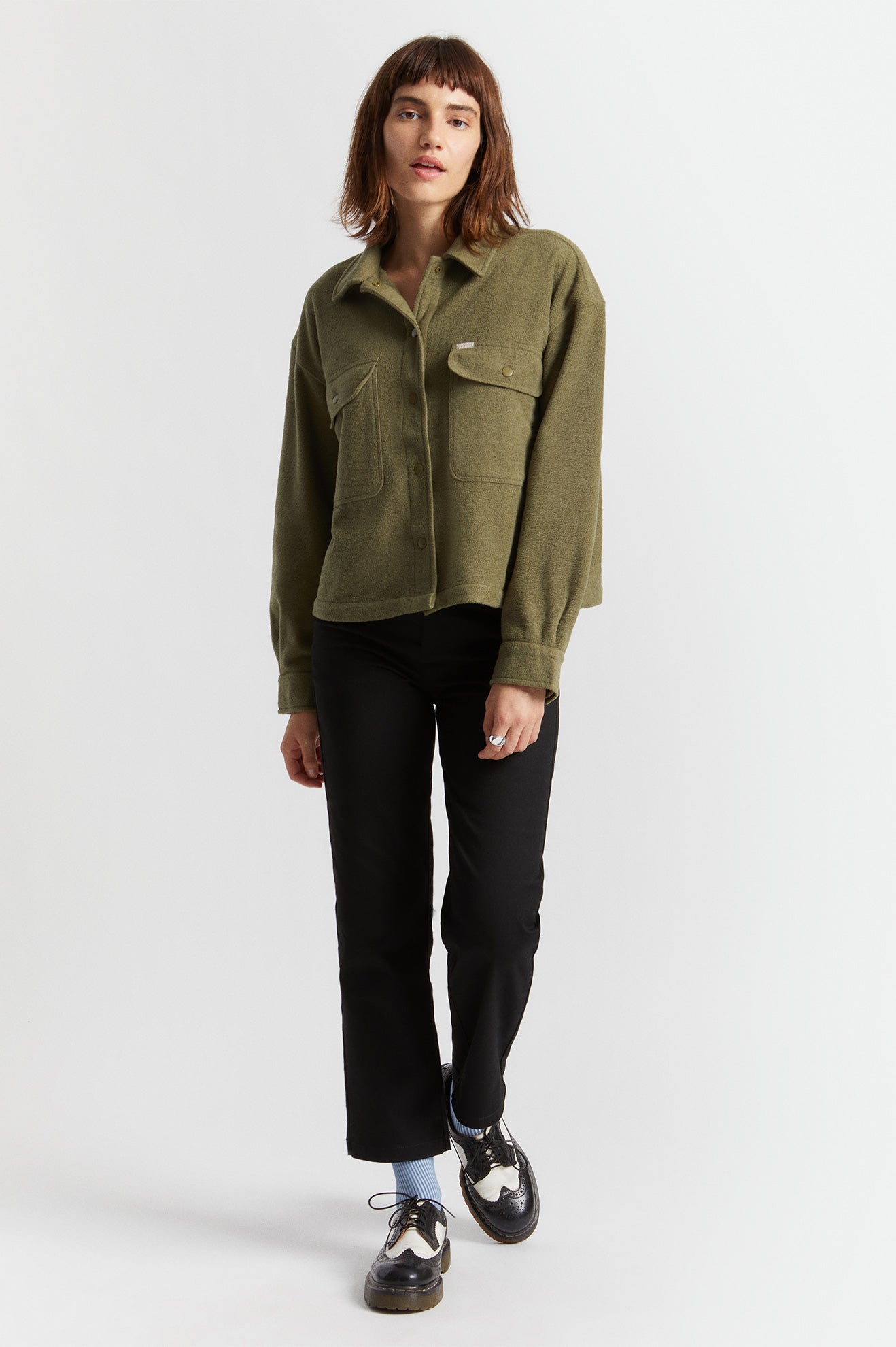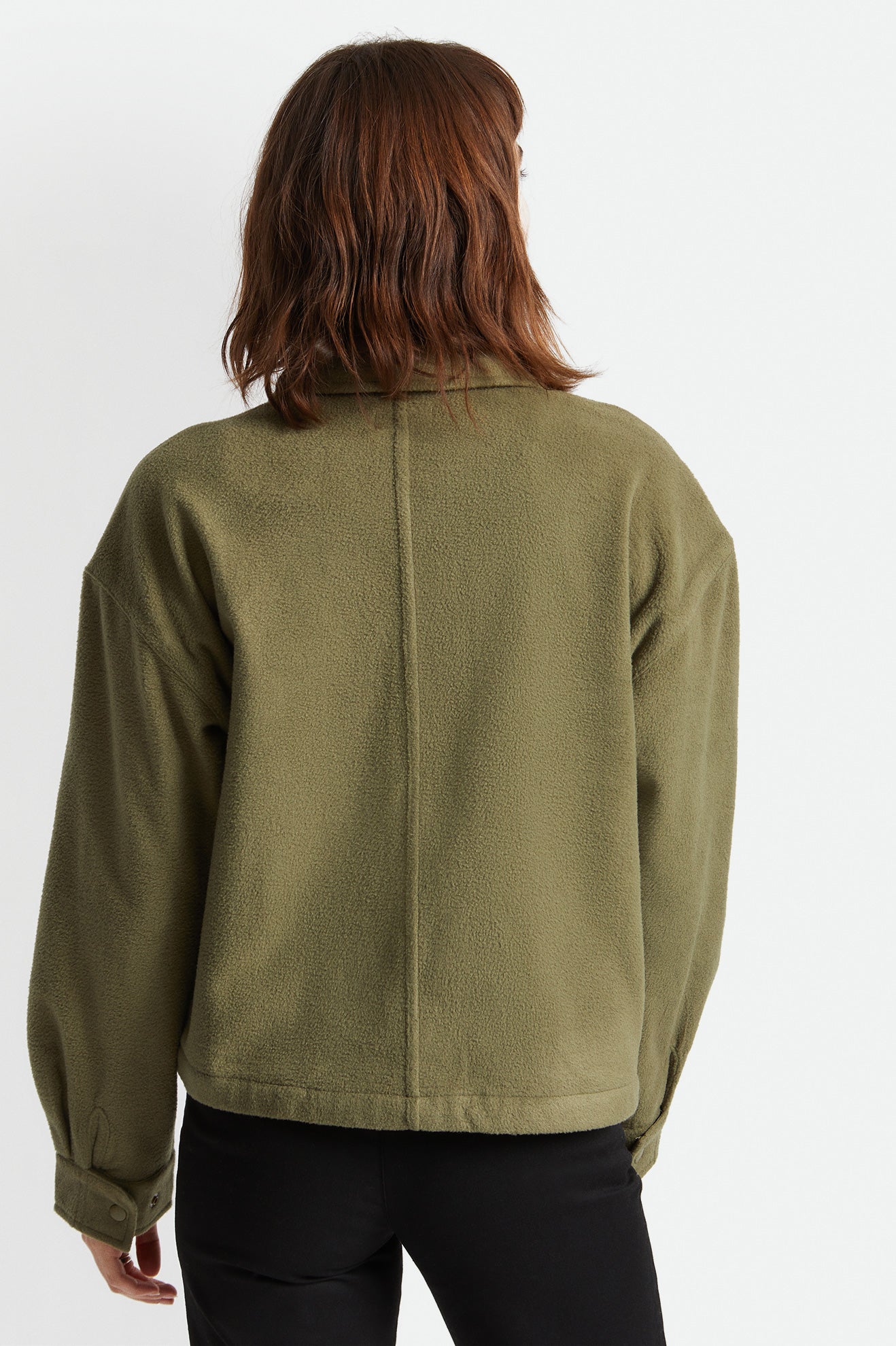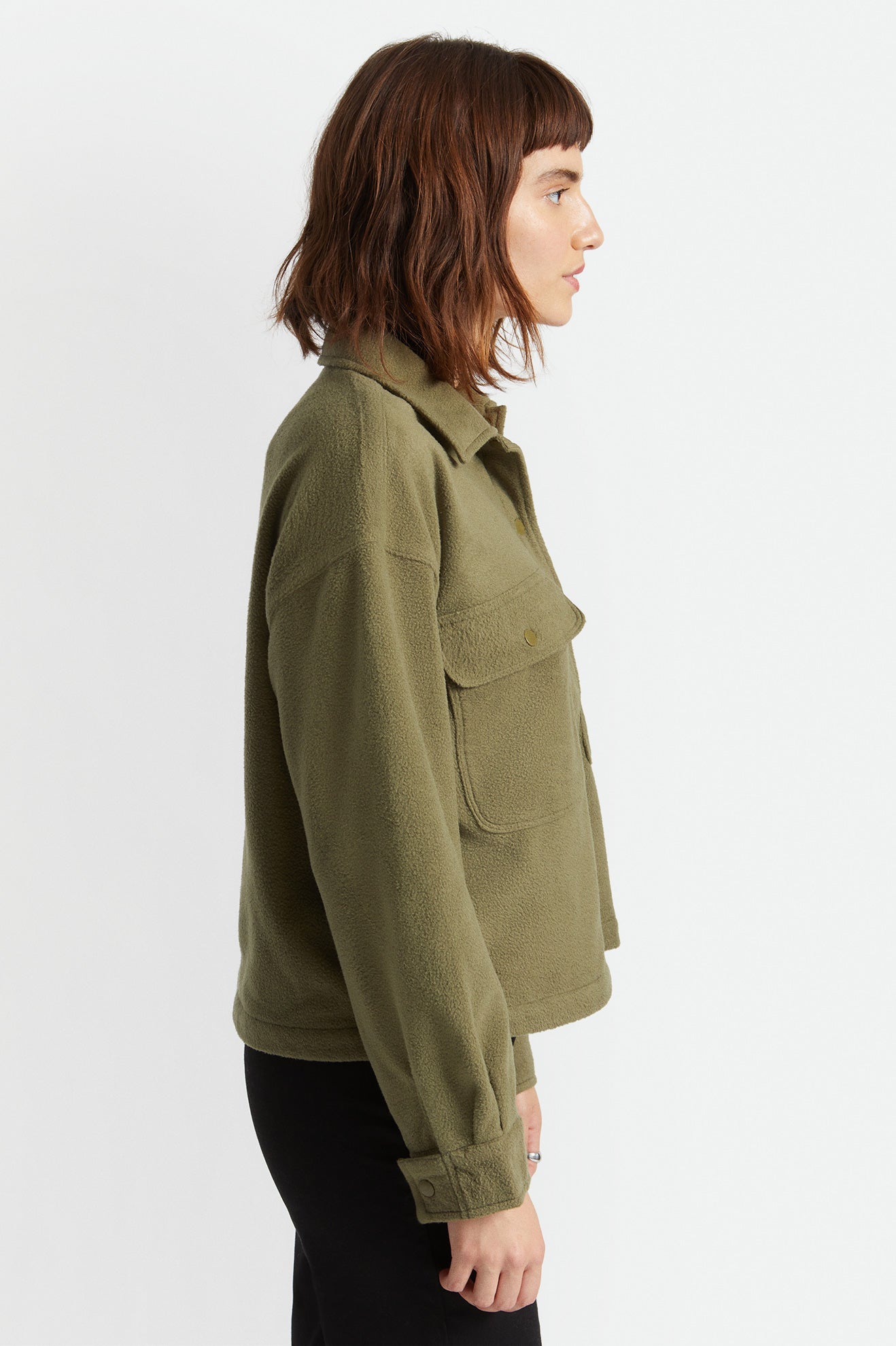 Featuring a drop shoulder, relaxed/cropped fit, and chest patch pockets, this fleece is a favorite for layering up all year long.
