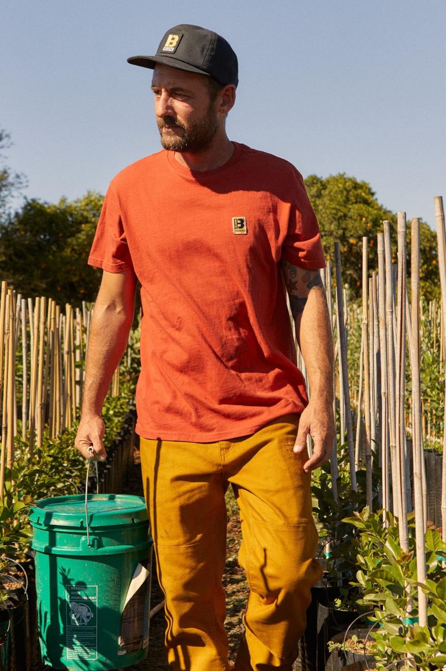 This is a staple tee with a standard fit. Made from soft, breathable cotton, it has a woven label at the left chest driven by our Builder's lineup.