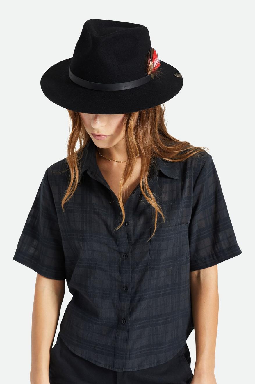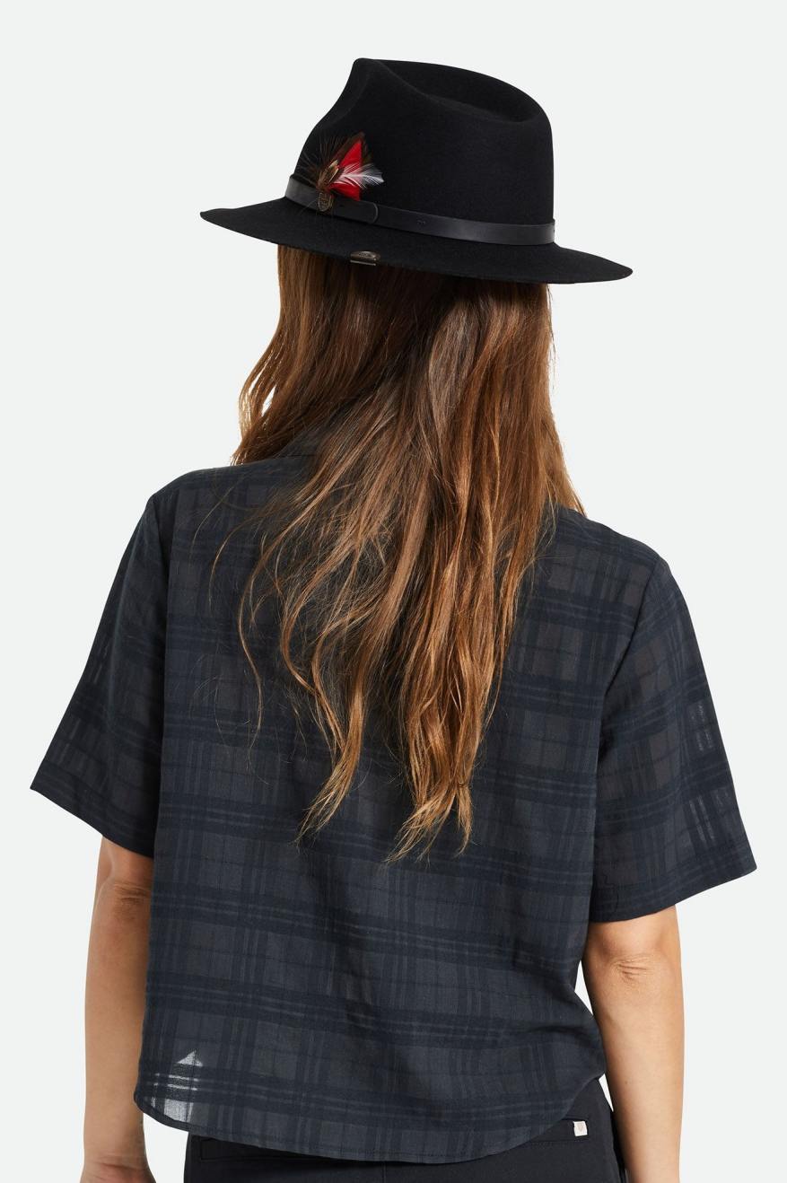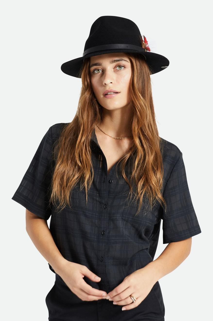 The Fender Jaguar Reverb Fedora features a classic fedora silhouette with added details to make this a truly premium style. The bands feature a Brixton & Fender logo pin, finished with a feather. While on the interior you’ll find a signature lining design, and Fender Jaguar guitar-inspired details, like two pick pockets in the band.