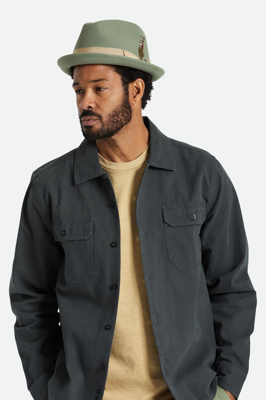 The Gain Fedora offers up vintage style with its short brim in an upward curve. It’s decorated with a grosgrain band, metal crest pin and authentic feather detail. Customize your fit with the adjustable Velcro strap under the inner sweatband.