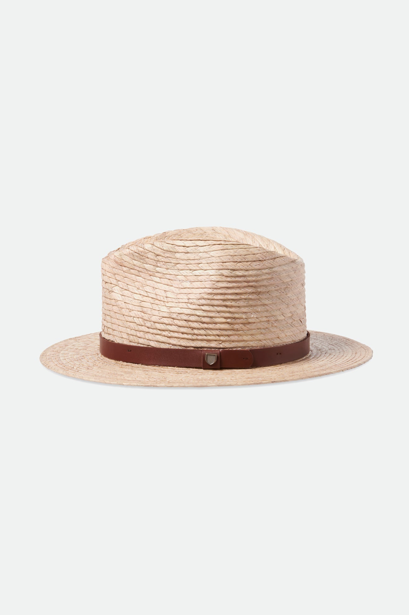 With a flat brim and statement crease, the Messer is an iconic shape in the Brixton line-up. This version is crafted with fine Tripilla straw that offers structure and 50+ UPF protection. Finished with a genuine leather band and metal crest pin, the Messer is the first thing you'll reach for when you leave the house.