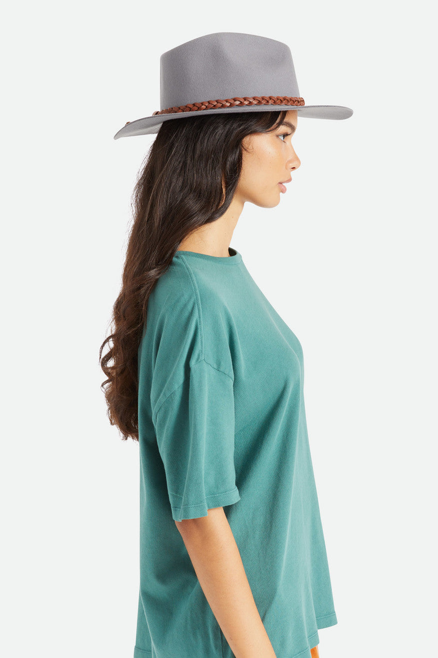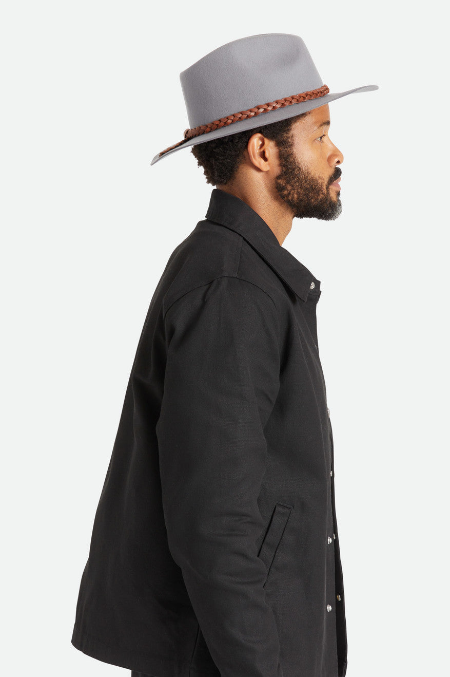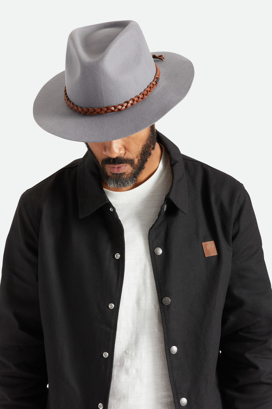 This fedora combines the classic styling of our Messer silhouette with a slightly larger brim for a Western aesthetic. Detailed with a premium braided leather band and metal headwear plaque. Dial in the perfect fit with our hidden size adjuster. Constructed from Australian wool.