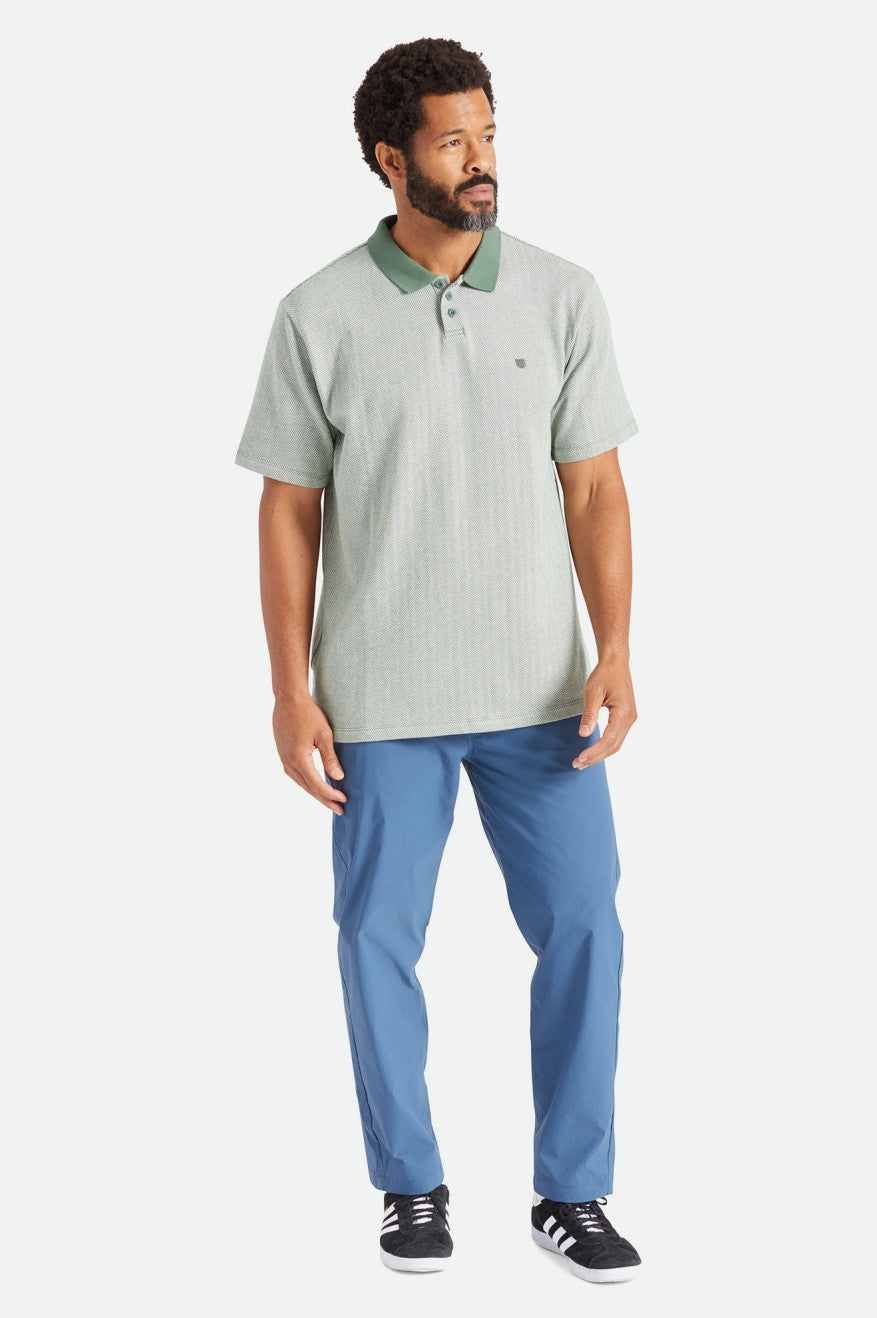 This standard-fit polo has been updated with a custom yarn-dye herringbone pattern for a nod to classic menswear. A three button placket and jacquard knit collar keep the classic polo presence.