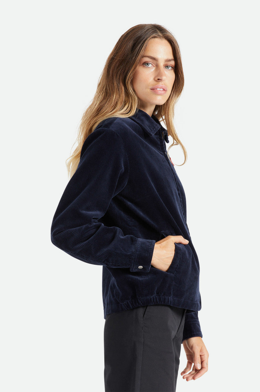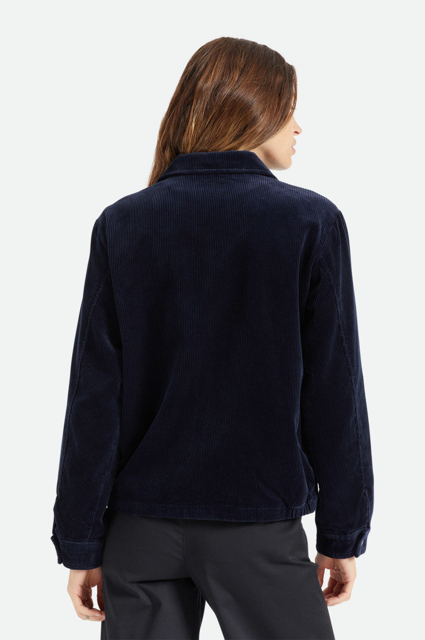 The Utopia Jacket borrows its structure from a classic workshop jacket. It has a relaxed collar, left chest patch and full zip. Finished with welt pockets and an elasticized hem, this piece is an easy topper for work days and weekends.